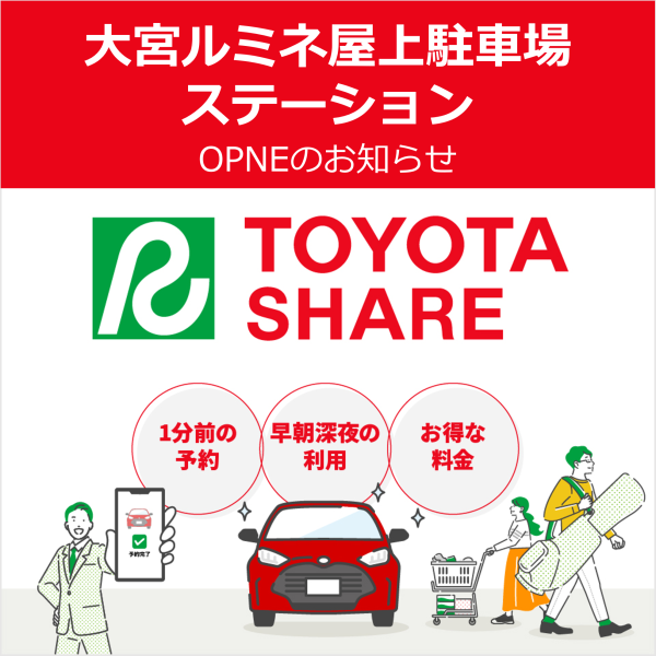 トヨタシェア 大宮ルミネ屋上駐車場ステーション OPENのお知らせ