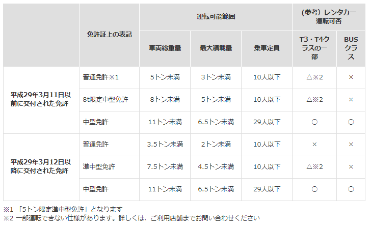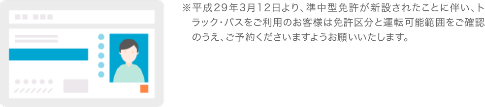 ※免許区分と運転可能範囲をご確認のうえ、ご予約くださいますようお願いいたします。