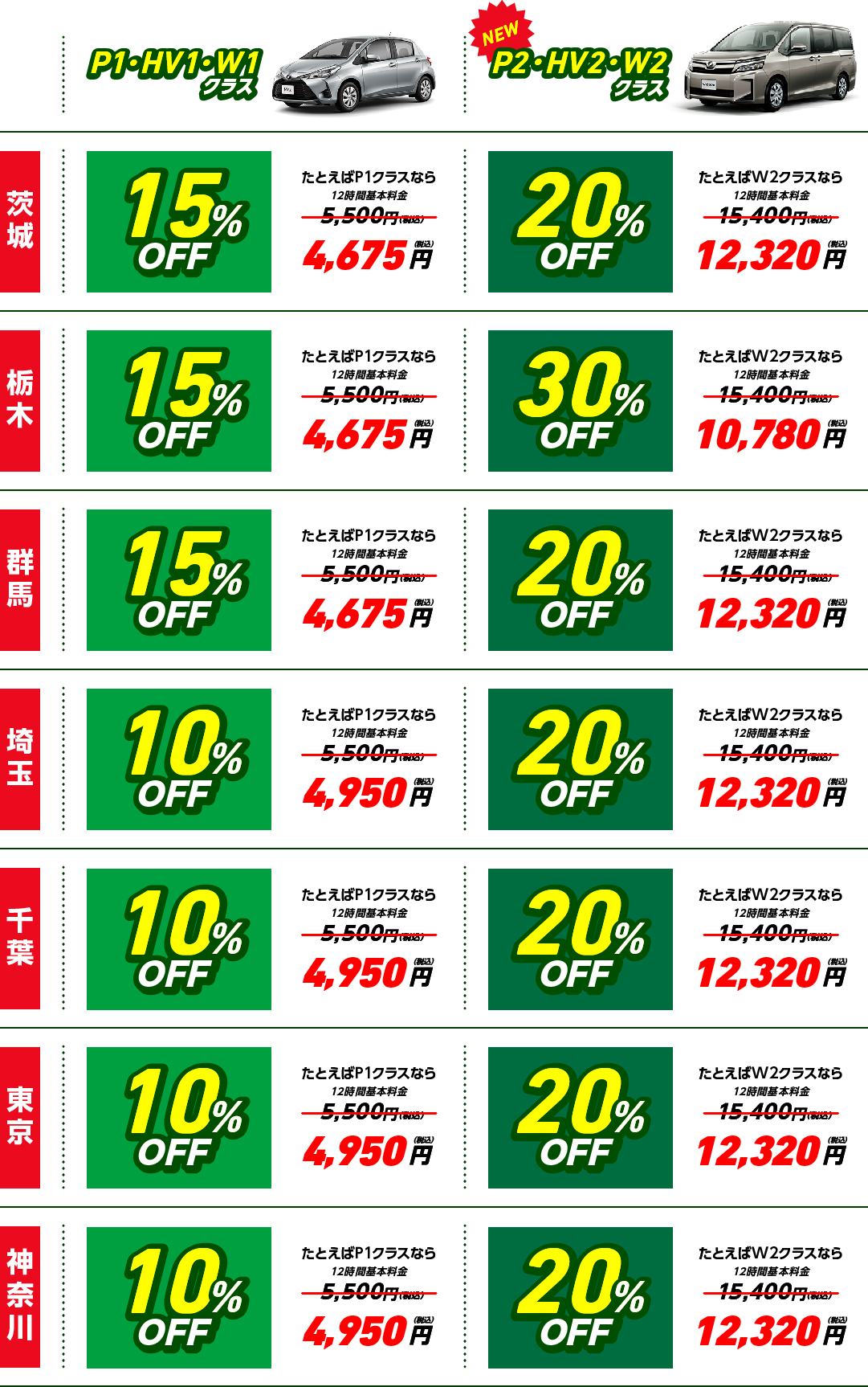 - ワンウェイご利用の場合、出発店舗のある都道府県・エリアの割引率が適用となります。