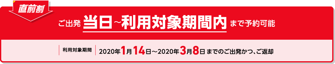 対象期間:2020年1月14日~2020年3月8日までのご出発かつ、ご返却
