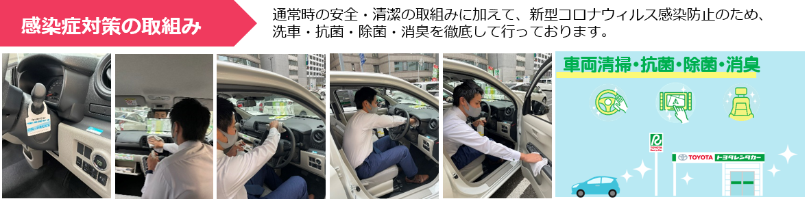 特に運転席周りの手の触れる部分(ステアリング、プッシュスタート、ダッシュボード、アウトサイド・インサイドドアハンドル、各種レバー等)を中心に拭き掃除・消毒の強化を実施しております。