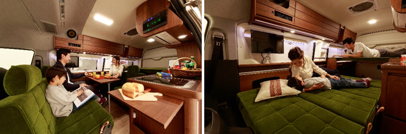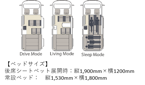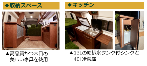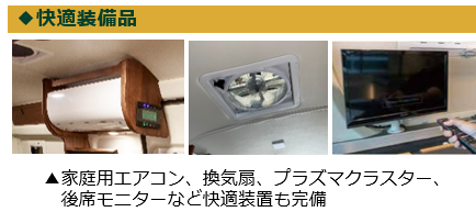 ⑥家庭用エアコンの使用はエンジン停止中、冷房のみ(SBT満充電で4時間使用可能)