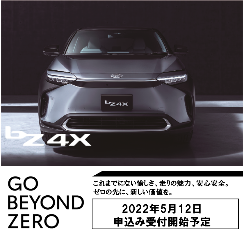bZとは、「Beyond Zero」の頭文字。 CO2排出量ゼロに向けた新たな答えとしてのBEV。 2050年のカーボンニュートラル実現に向けて、HEV、PHEV、FCEVに加わり、新たなBEVシリーズの「TOYOTA bZ」が走り出します。