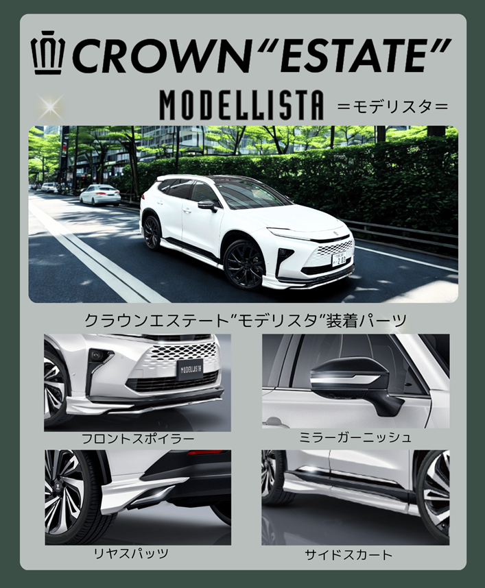 通常のクラウンエステートやカローラクロス、ヤリスクロスとは一味違う、モデリスタ仕様の特別モデルです。