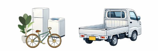 | 積載目安 | 冷蔵庫(小)、洗濯機、テレビ、電子レンジ、PC、布団、箱10個 など |