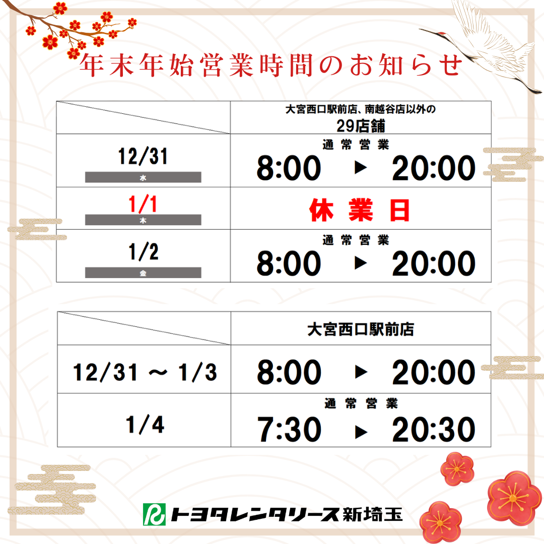 平素より当社をご利用いただきまして、誠にありがとうございます。年末年始の営業時間を以下の通りにさせていただきますので、ご了承ください。