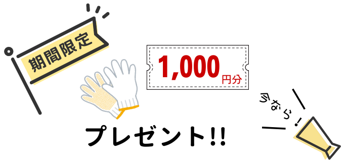 軍手2双 & 次回から使える1,000円分クーポンプレゼント!!